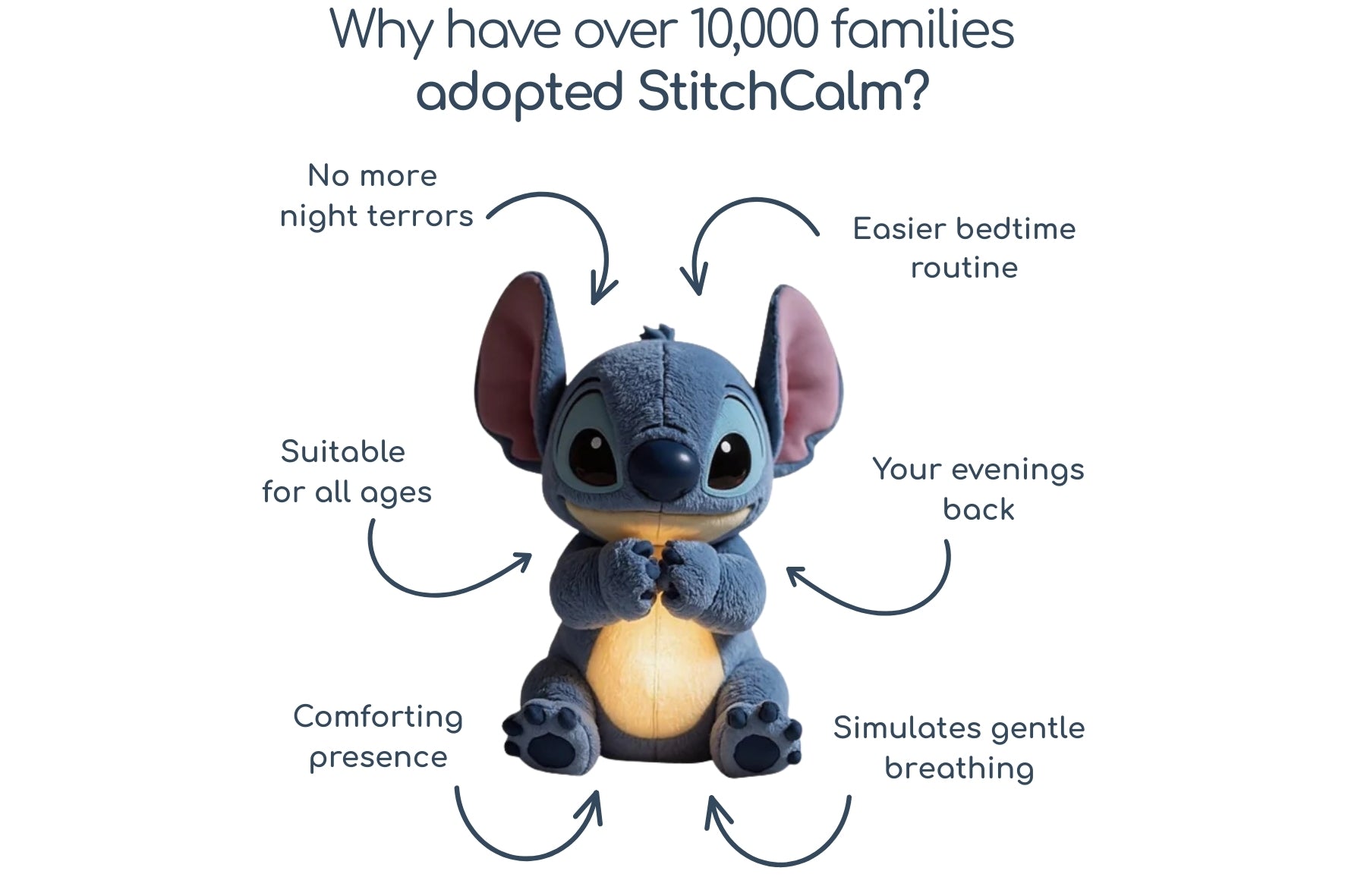 StitchCalm gently mimics breathing, emits a calming light, and plays relaxing melodies.