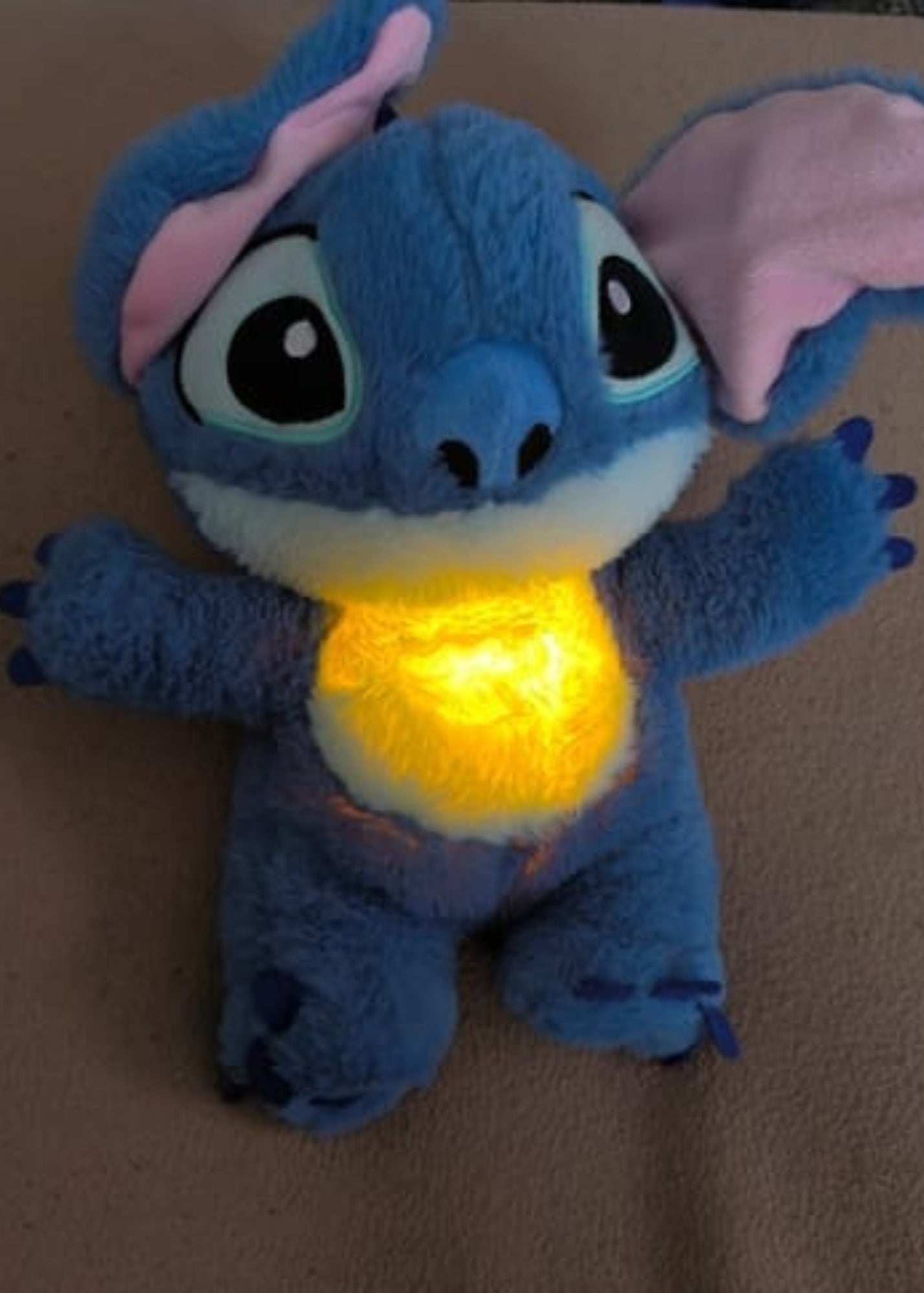 Stitch is even cuter in real life! A high-quality plush, and the light creates a magical atmosphere.