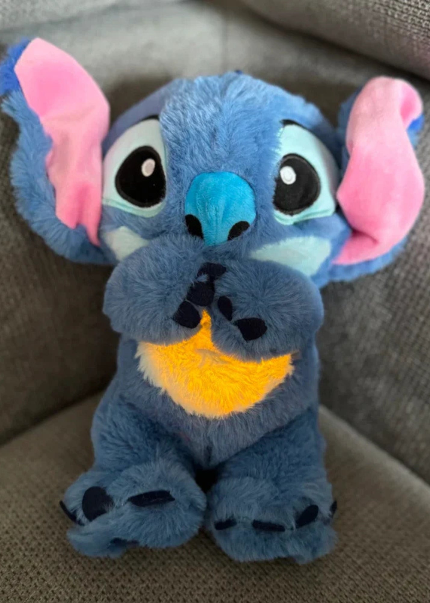 The Stitch plush promotes relaxed sleep. With its gentle breathing rhythm and soothing light, it creates a cozy atmosphere and provides a sense of security.
